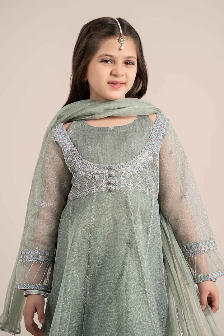 3 Piece Embroidered Polyester Net Suit